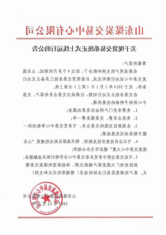 煤炭交易中心正式上线的公告