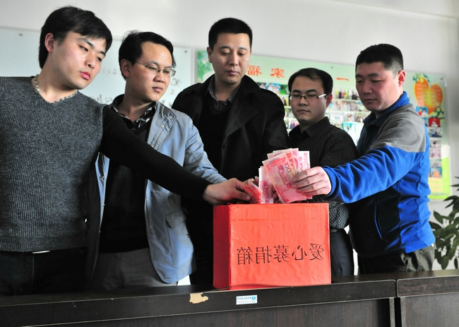 “献出一份爱心,托起一片希望。”3月5日下午,运河煤矿综采一区自发组织为工友捐款献爱心活动。在区队会议室,参加班前会学习人员和陆续上井人员,来到捐款箱前,为困境中的工友奉献一份爱心。