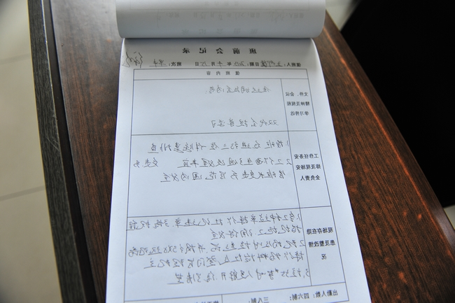 安全质量监察科专门印制了《矿值、带班人员参加班前会登记台账》,存放在调度机台,要求矿值、带班人员参加班前会后及时到调度机台按规定填写内容,安全质量监察科每月负责收集、监督执行。