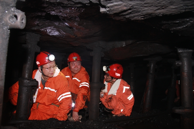 上午九时许,李总一行到矿立即换衣服下井,深入2703薄煤层工作面检查指导工作。在长近130米、平均厚度不足1米的工作面,李总一行一边蹲行一边详细了解工作面生产组织开展情况,并要求干部职工一定要做好本职工作、抓好安全生产。